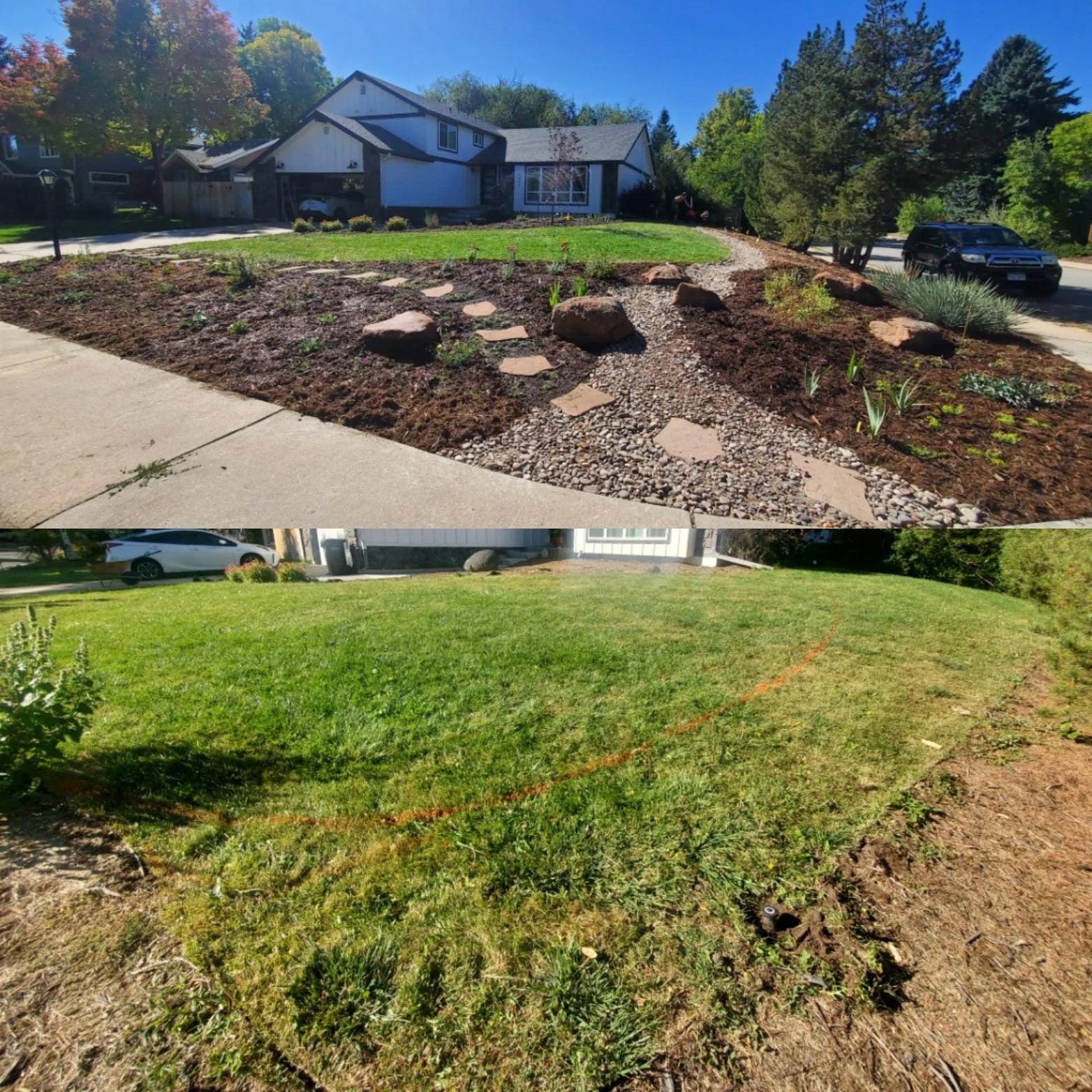 A landscape design to install includes a meandering path, functional dry creek bed, xeriscape gardens that focus on pollinator friendly plants.